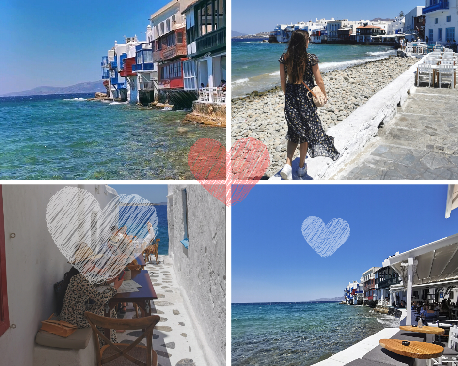 Juste à côté des moulins, le quartier de la Petite Venise, comme je vous le disais, est un must sur l’île. Il est bordé de bars et de restaurants très prisés, surtout pour le coucher du soleil car ils offrent une vue imprenable sur la mer Egée et surtout sur ses maisons immergées, d’où son surnom de Petite Venise.