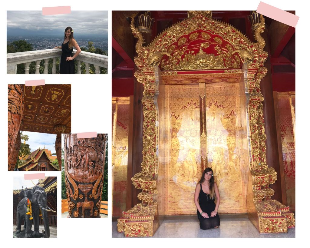 Après environ 30 min de route, nous arrivons au sommet de Doi Suthep. La visite commence par un arrêt à la découverte d’un petit temple extérieur, un véritable havre de paix, où nous avons la chance d’être quasiment seules. Nous profitons de ce moment de quiétude pour nous ressourcer après notre long voyage depuis Bangkok et pour nous imprégner de l’ambiance mystique et apaisante du lieu.