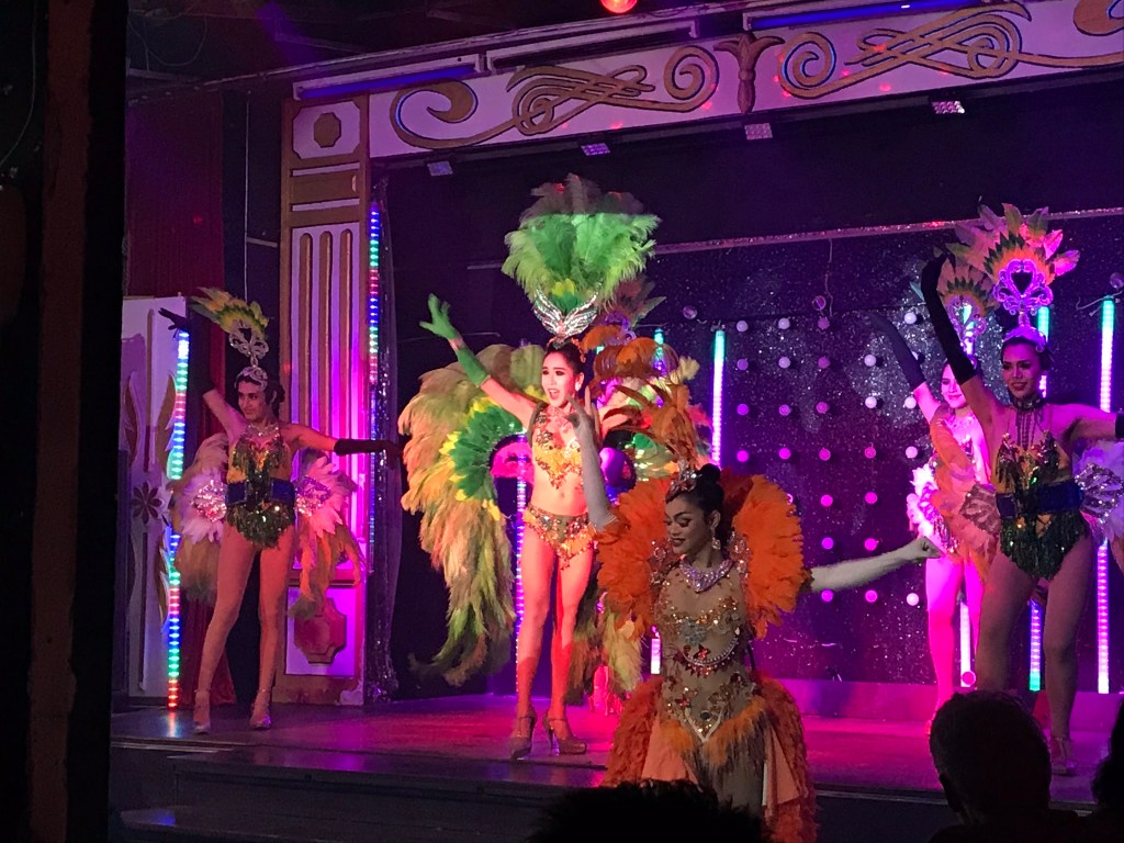 Il s’agit de représentations de chant et de danse, interprétées par des travestis, généralement des hommes devenus femmes. L’ambiance était vraiment incroyable et la salle totalement bondée ! Ici les Ladyboys (de l’Anglais fille-garçon), aussi appelés Katoï, font partie de la culture. La Thaïlande est le pays qui en compte le plus grand nombre, notamment car ils sont globalement bien acceptés, autant dans les familles que dans le monde du travail.