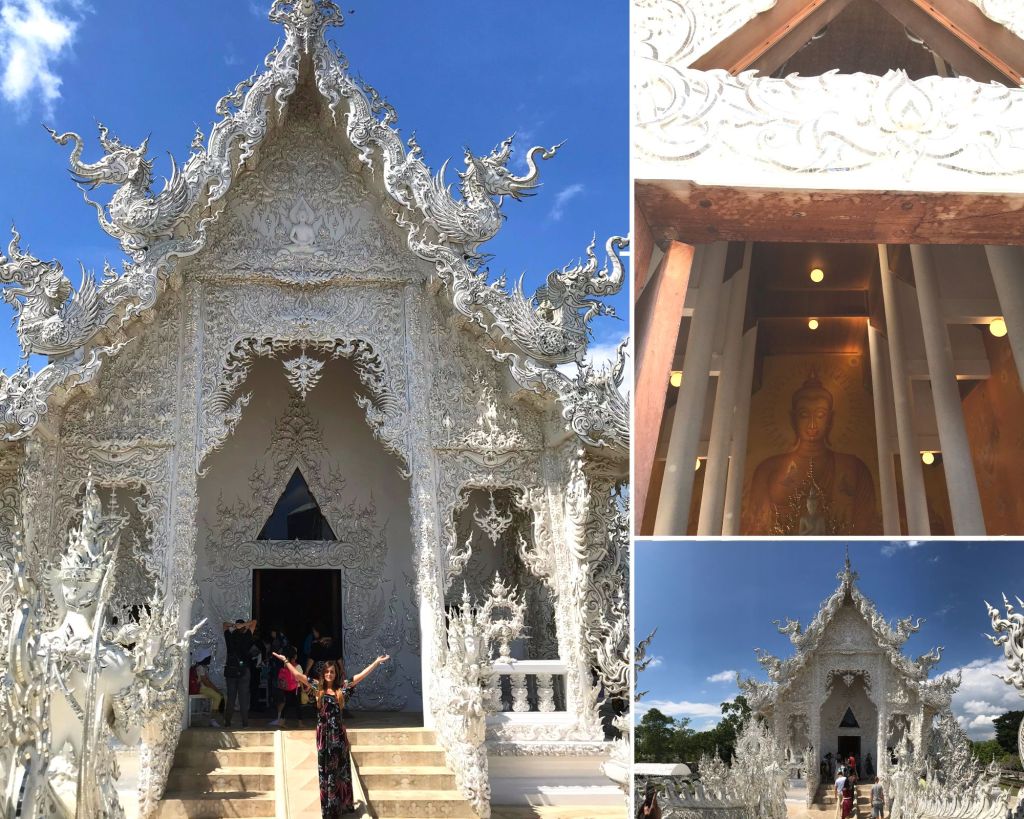Sous une chaleur écrasante, nous arrivons face au temple d’une blancheur immaculée – presque éblouissante – symbole de pureté et d’harmonie pour les Bouddhistes.