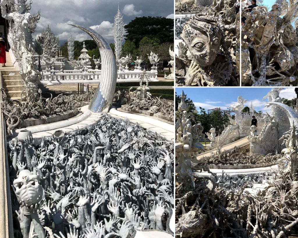 Pour arriver à l’intérieur et atteindre la porte du ciel, il faut traverser un pont sous lequel se dressent des centaines mains levées, qui semblent vouloir nous attraper et nous attirer. On dit que celui qui tomberait dans cet enfer serait immédiatement transformé en pierre, comme tous ces touristes, pris au piège après avoir cédé à la tentation, au désir et à la cupidité. Ok c’est un peu flippant tout ça.