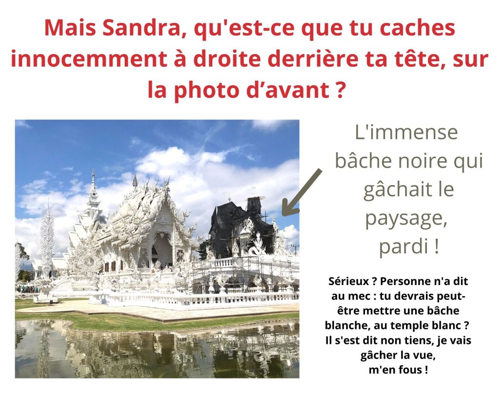La journée commence par la visite du temple blanc : le Wat Rong Khun – édifice aussi féérique qu’étonnant – qui ne sera terminé qu’en l’an 2070