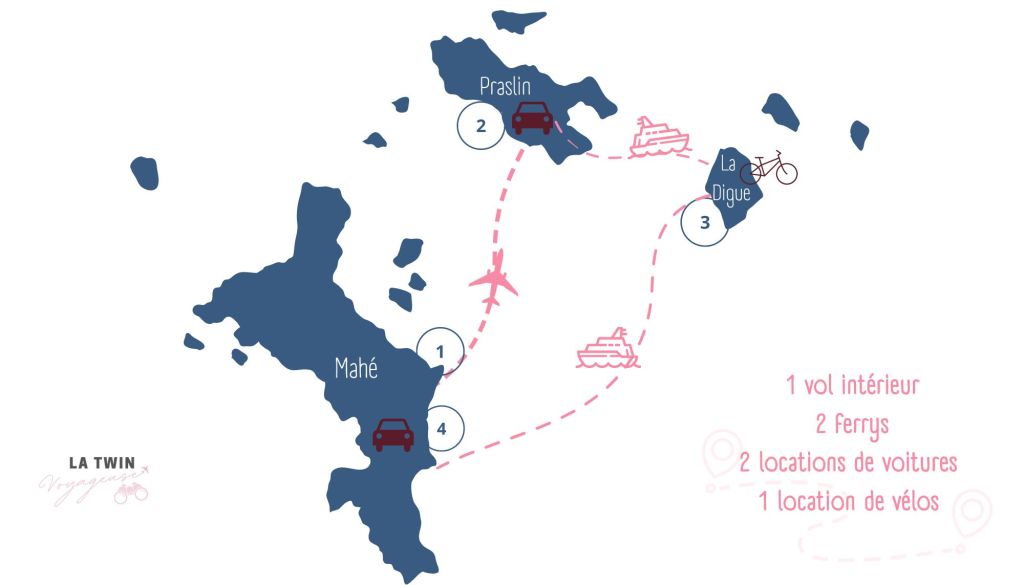 Ma sœur jumelle, son chéri et moi [et nos passeports coco-tamponnés en poche] étions fin prêts pour partir à l’assaut des 3 îles principales des Seychelles : Mahé, Praslin et La Digue.