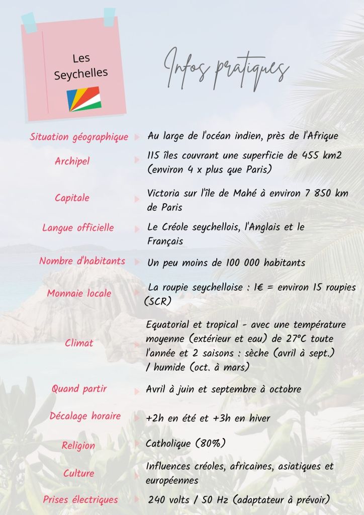 Pendant ce séjour de rêve, nous aurons passé 5 jours sur l’île de Praslin puis 5 jours à La Digue et enfin 3 jours sur l’île de Mahé, avant de rentrer.