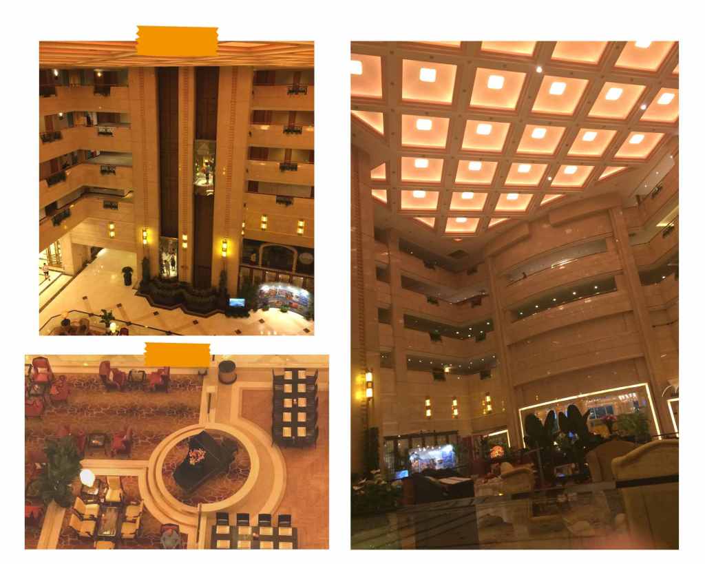 L’entrée de l’hôtel est immense, époustouflante, avec un piano, un restaurant et même des ascenseurs transparents.