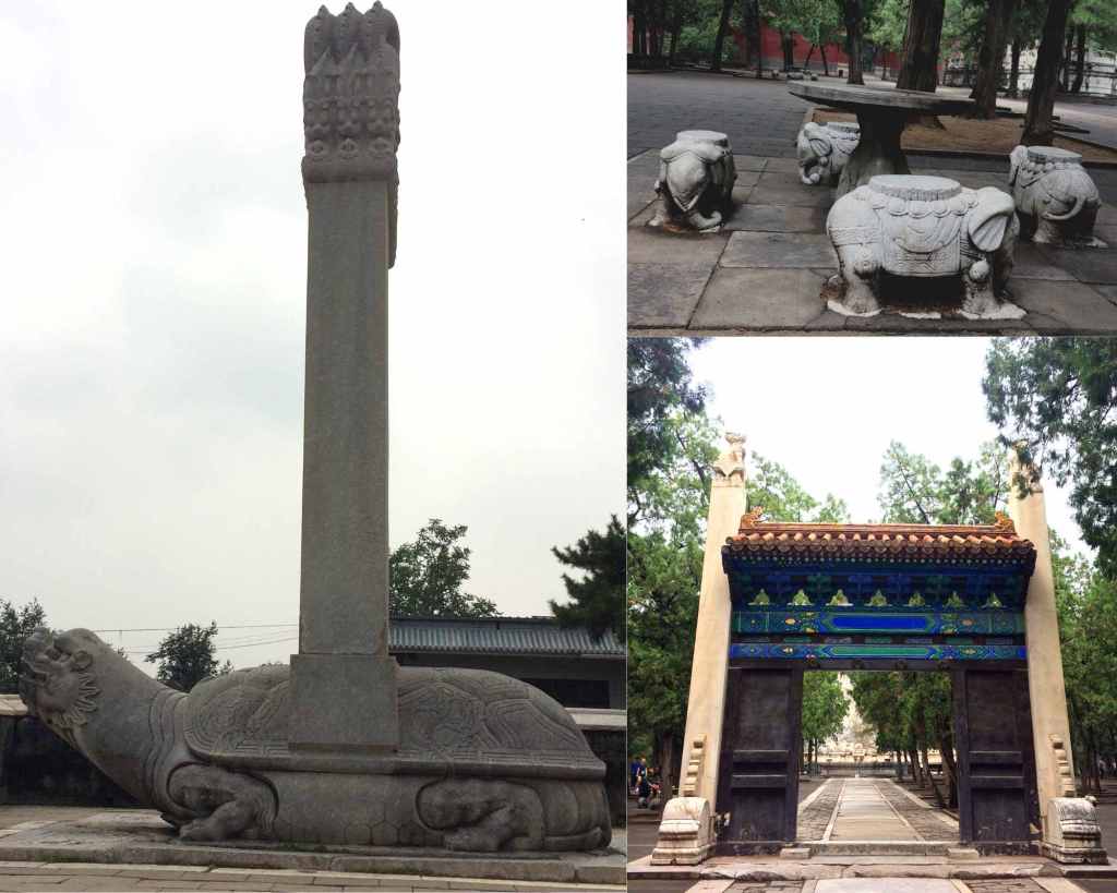 On trouve aussi sur notre parcours une tortue immense, portant sur le dos la plus grande stèle de Chine, d’une hauteur de 10 mètres. Construite en 1425, elle symbolise l’immortalité.