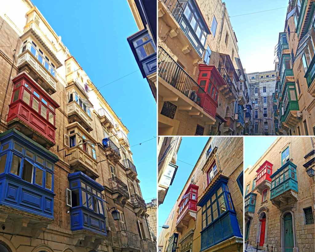 Ce que j’adore à Malte, ce sont ses fameux gallariji (« blow window » en Anglais), des balcons colorés vraiment typiques et propres à Malte.