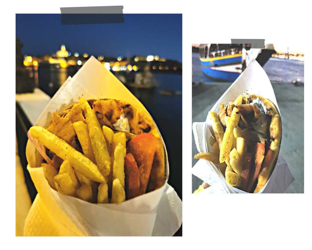 Après un joli coucher de soleil sur le retour, je décide de dîner sur le port de Sliema, grâce à un food truck, qui propose des spécialités grecques (oui je sais, rien à voir avec Malte mais j’avais envie d’une Pita Gyros, ça ne s’explique pas).