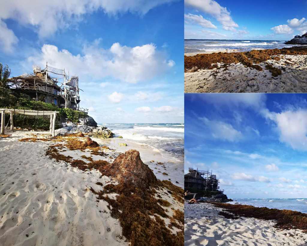 La plage justement, est complètement bondée et remplie de sargasses. Ce n’est pas ici que nous nous baignerons.