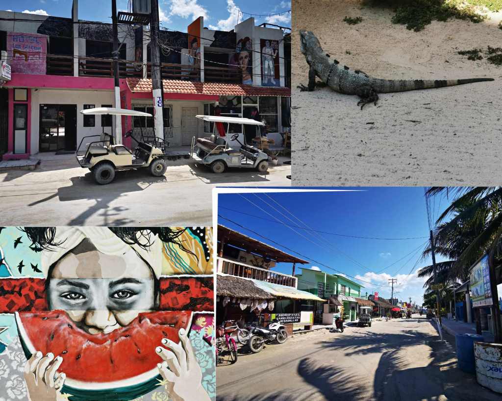 Nous arrivons sur l’île de Holbox. Un peu comme à Isla Mujeres, ici les voitures sont remplacées par les voiturettes de golf. C’est comme cela que nous rejoindrons notre AirBnB (lien ici) à 89 € la nuit.
