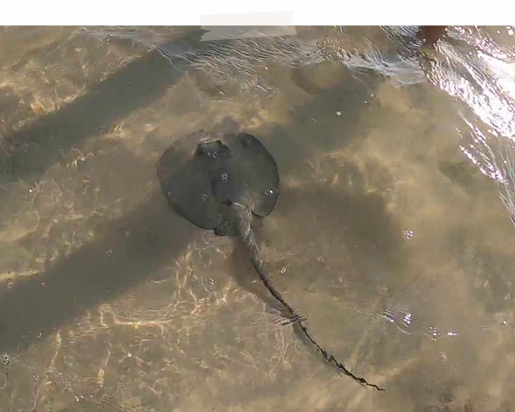 Ah si, nous avons vu tout à coup se déplacer d’une manière un peu étrange un genre de raie mais toute petite et qui avait l’air d’avoir une carapace.